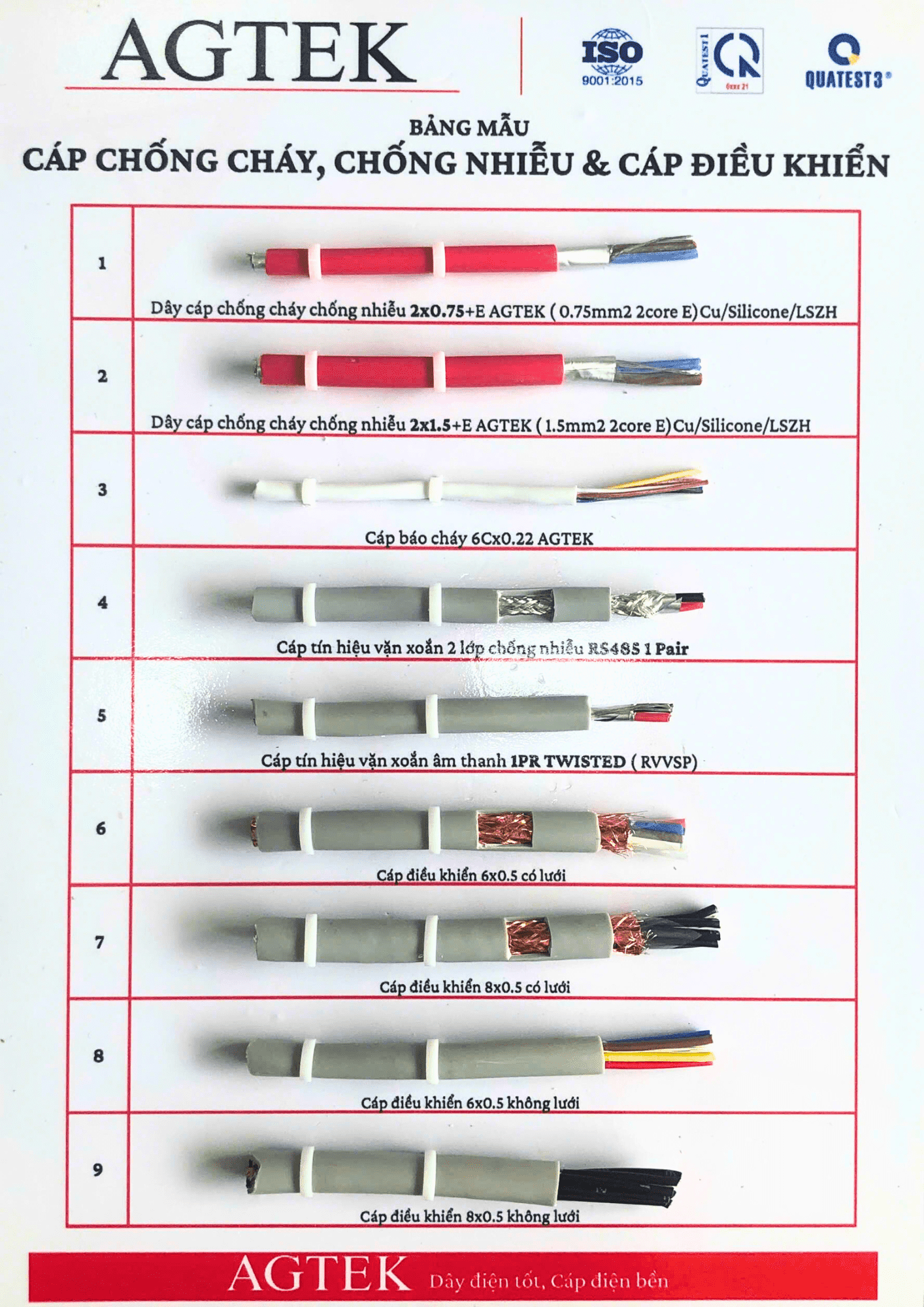 BẢNG MẪU CÁP CHỐNG CHÁY, CHỐNG NHIỄU VÀ CÁP ĐIỀU KHIỂN AGTEK